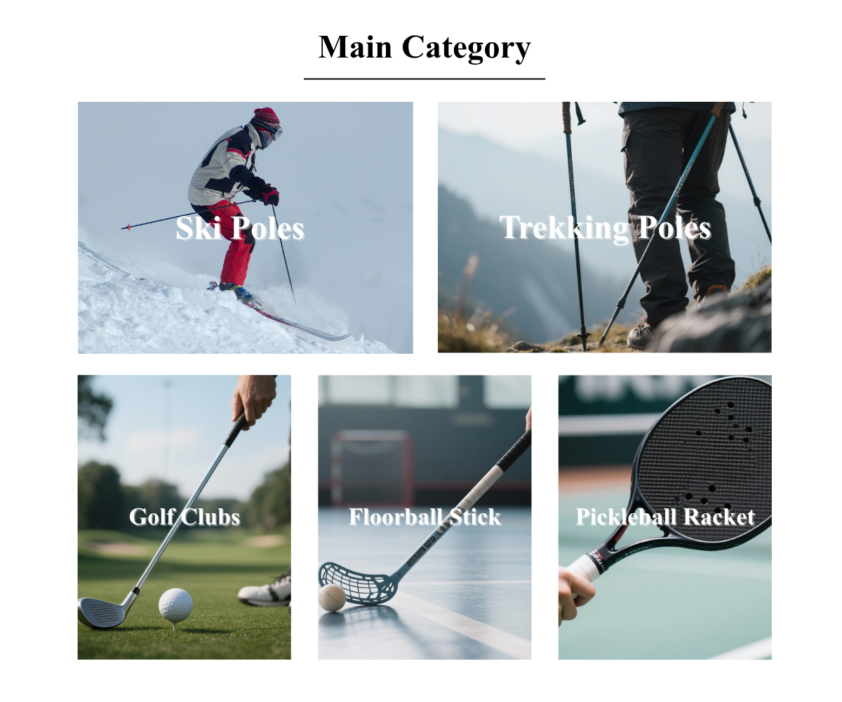 Produk utama: Tongkat Trekking, tiang Ski, poros Golf, tongkat Floorball, dayung SUP